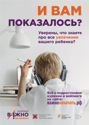 Она состоит из: кампании по борьбе с продажей несовершеннолетним табачной и никотинсодержащей продукции «Спасибо за отказ!» и просветительского проекта для учителей и родителей «Важно не начать!».